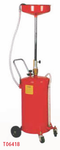 18 gallon self-evacuating oil drainer designed for efficient oil collection in workshops. Features heavy-duty construction, adjustable height and air pressure discharge system.