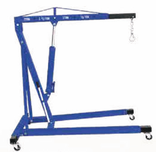 Available models: T62101 (1 ton) and T62102 (2 ton). Package: 2 cartons per unit. Package size: 1490×720×90 mm and 1420×280×180 mm. Lifting height: 0–2380 mm. Designed for engine removal and installation in workshops.