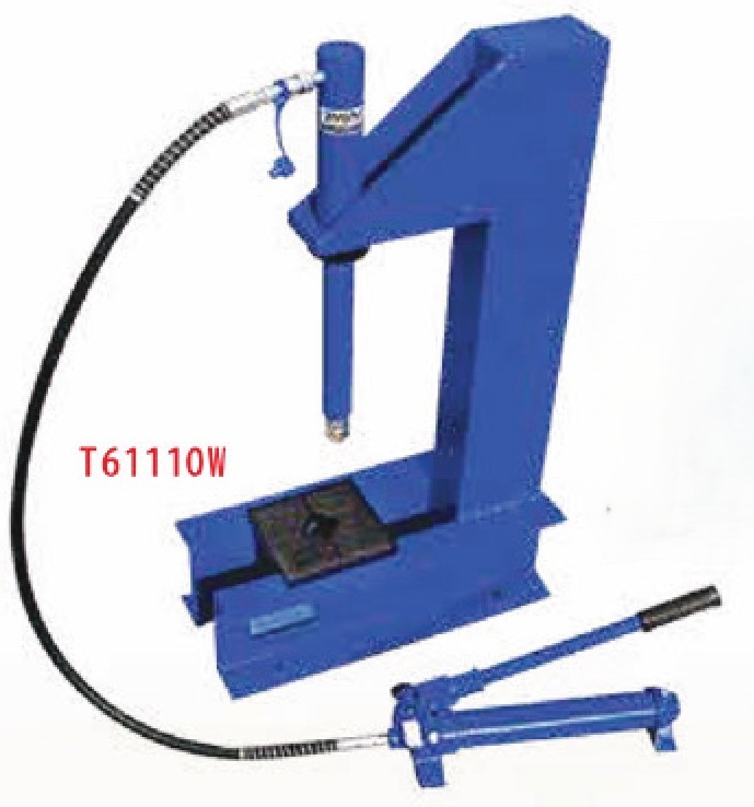 Capacity: 10 ton. Stroke: 120 mm. Max working distance: 450 mm. Net weight: 60 kg. Gross weight: 68 kg. Package size: 990×610×280 mm. Heavy-duty C-frame hydraulic press for automotive repair, bearing installation, and pressing applications.