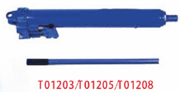 Available models: T01203 (3 ton), T01205 (5 ton), T01208 (8 ton). Min height: 630 mm. Max height: 1120–1125 mm depending on model.