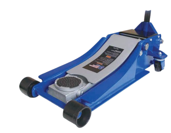 Available models: T31513 (3 ton, 80–508 mm), T31515 (3 ton heavy duty, 80–508 mm), T31523 (3.5 ton, 70–508 mm). Dual pump quick lift system. Low profile design suitable for lowered vehicles. Heavy steel frame construction. Rear swivel casters and 360 degree rotating saddle for easy positioning.