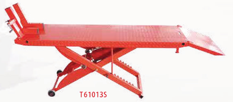Compact hydraulic motorcycle lift table offering 1000 lbs capacity with reinforced structure and lifting height up to 840mm. Ideal for professional servicing operations where space-saving design and reliable lifting performance are required.