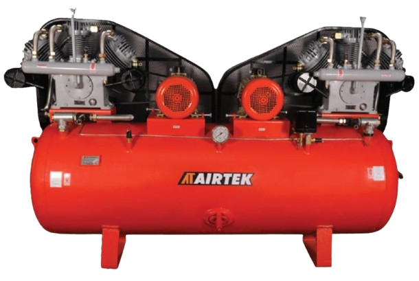 Two stage reciprocating air compressors including models ATT 200 ATT 300 ATT 500 ATT 600 ATT 1000 and ATT 1500 featuring 2 to 3 cylinders with displacement from 7 to 54 CFM and working pressure of 12 kg per cm2 or 170 PSI with tank capacities ranging from 160 to 500 litres.