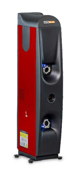 Contactless machine vision wheel alignment system with video camera projection technology. No wheel targets required. Measures vehicle within one minute. Suitable for wheelbase 1800 to 4000 mm and wheel diameter up to 890 mm. Automatically rotating rear posts. High performance computer with real time diagnostics display.