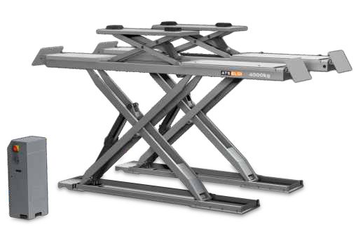 Ultra-thin wheel alignment scissor lift with 4000 kg primary capacity.