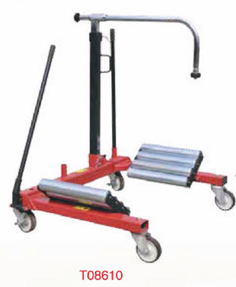 Heavy-duty wheel dolly with 1200kg capacity and 500mm max wheel width support. Designed for safe vehicle movement and repositioning in service areas.